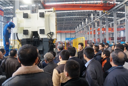 來(lái)賓觀看新產(chǎn)品-擠壓鑄造機(jī)