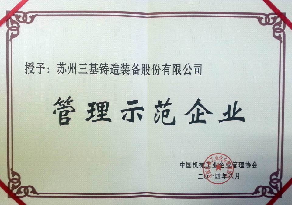 獲得的管理示范企業(yè)證書(shū)